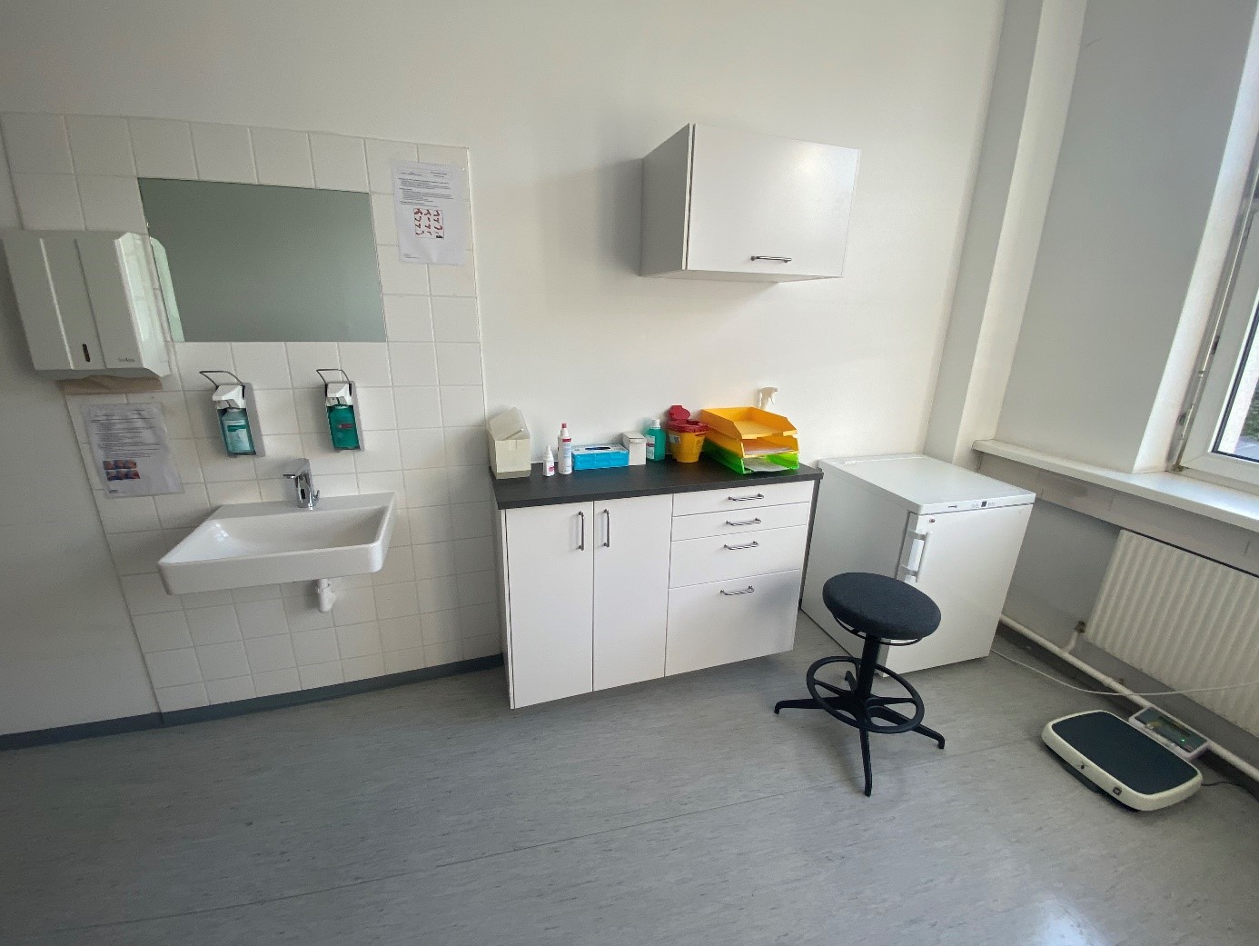 Als wir vor der neuen Küche standen, waren wir so begeistert, dass wir uns gleich an die Neueinrichtung der Ärzt_innenzimmer machten. Hier brauchte es Kästen und Arbeitsflächen für den medizinischen Gebrauch. Auf den Geschmack gekommen, lösten wir auch diese Fragestellung mit dem schwedischen online-Küchenplaner. Die neuen Kästen können sich sehen lassen, und dass es eigentlich Elemente aus einer Einbauküche sind, bleibt (fast!) unser Geheimnis.